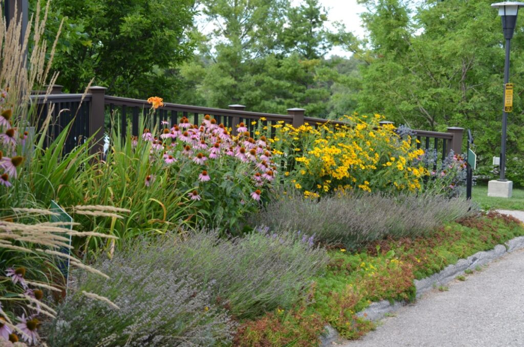 Incorporate a range of plants that provide food for pollinators from spring to fall. Early Spring and late Fall can be difficult times for pollinators to find blooming plants, despite being critical periods in many pollinators’ lifecycles. For example, many bumble bee species emerge from hibernation in early Spring and produce new queens in late Fall. Aim to have at least three plants blooming all year.