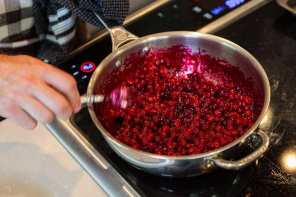 Wild Cranberry Sauce: For a super aromatic cranberry sauce, combine red wine (I use Biff’s Juicy Red for its fruit-forward notes) with sugar (or, if you’re like my mom, maple syrup) and fall spices like cinnamon, cloves, star anise and allspice, and reduce to a syrup. Add your wild cranberries and toss thoroughly until heated through and the flavours are well-incorporated. Whether you’re sourcing from a forager or picking your own, wild cranberries are going to pack more of a punch in a smaller bite than farmed cranberries, yielding an extra tart and almost cherry-like flavour.